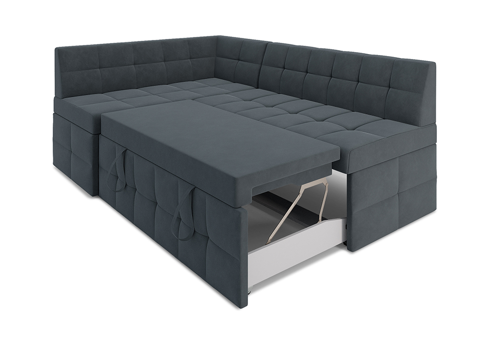 —Кухонный угловой диван дельфин Атлантис велюр серо-синий