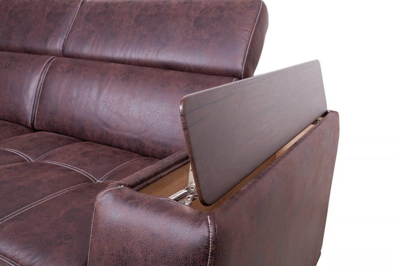 Особенности дивана: Большой и очень комфортный диван с оттоманкой. Удобный и надежный механизм - дельфин позволяет разложить диван очень быстро. Мягкие накладки на локти и 6-ти позиционные подголовники подарят вам комфорт при использовании этой модели.