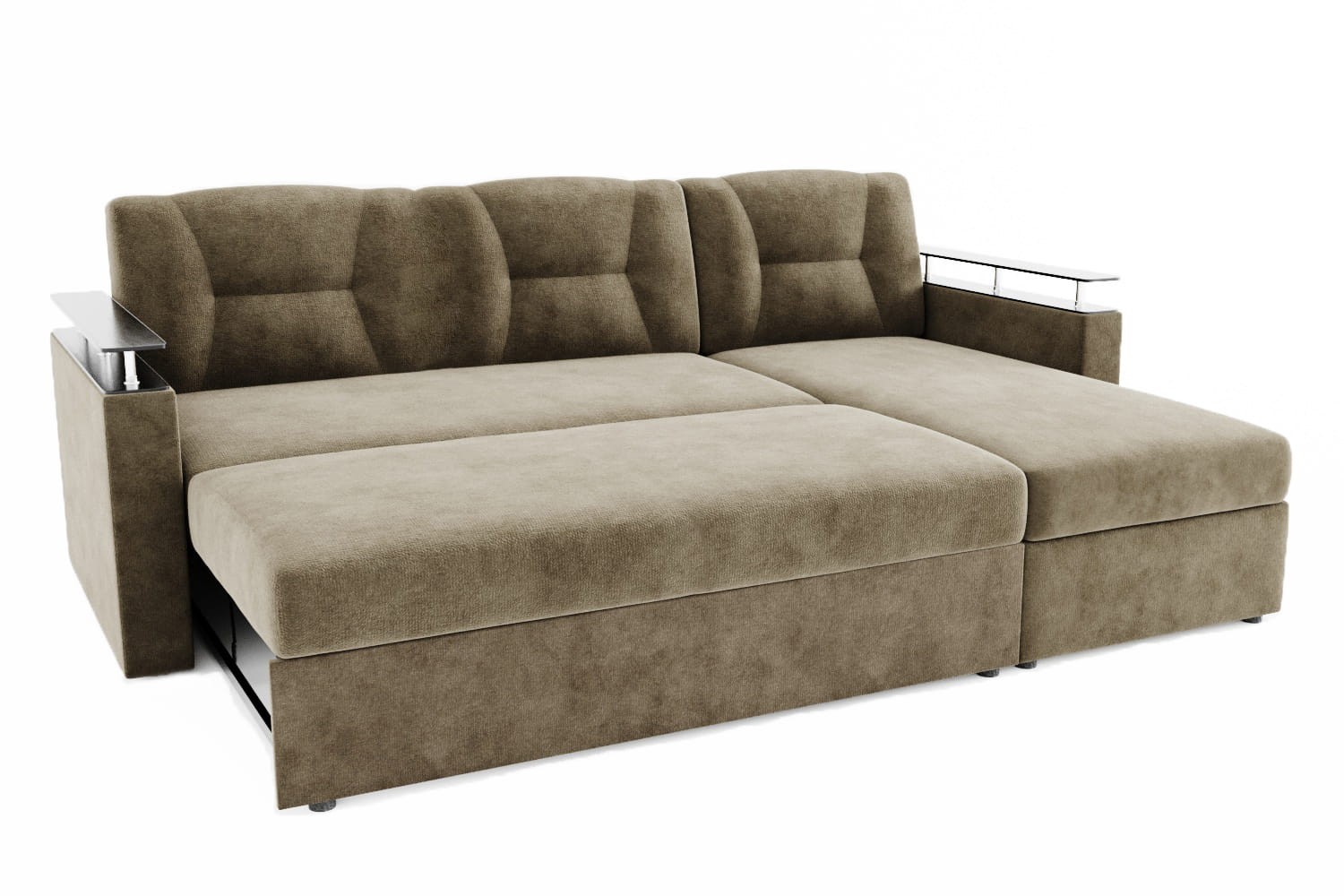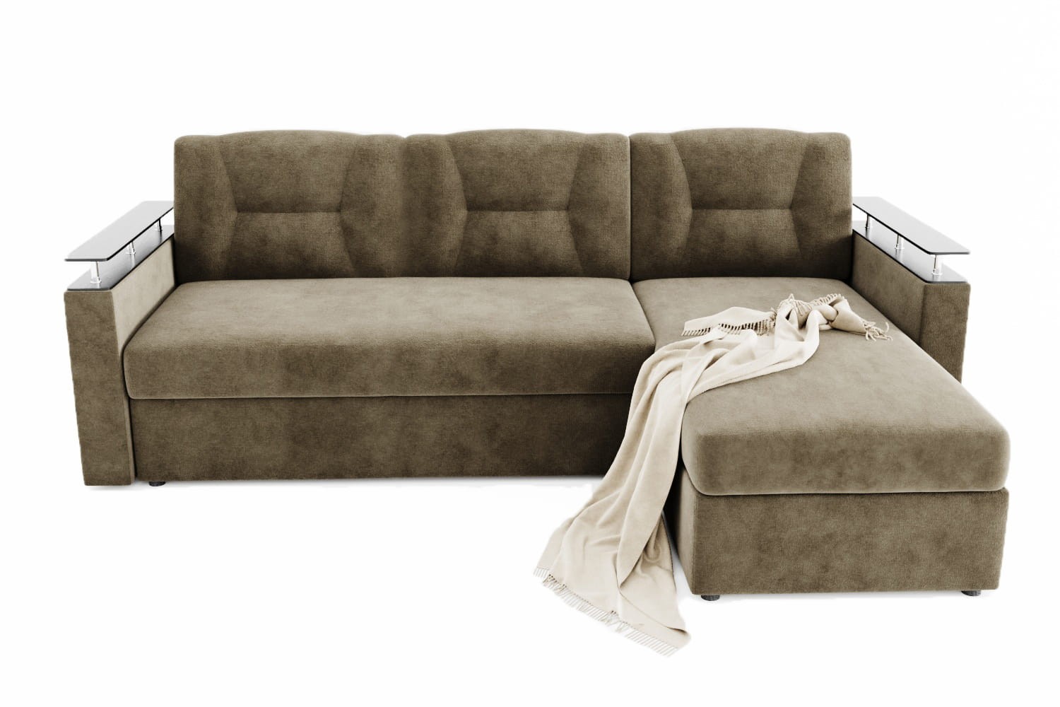 Особенности дивана: Изысканный и стильный трансформер для оригинальных дизайнерских решений. Практичный и вместительный: имеет большой ящик для белья, удобную оттоманку и просторное спальное место. Поможет выгодно зонировать пространство за счёт угловой модели. Толщина ППУ - 100 мм. Глубина сидения: 63 см. Доставляется в разобранном виде: локти, оттоманка, диван. Сзади дивана техническая ткань. Локти к дивану цепляются на салазках.